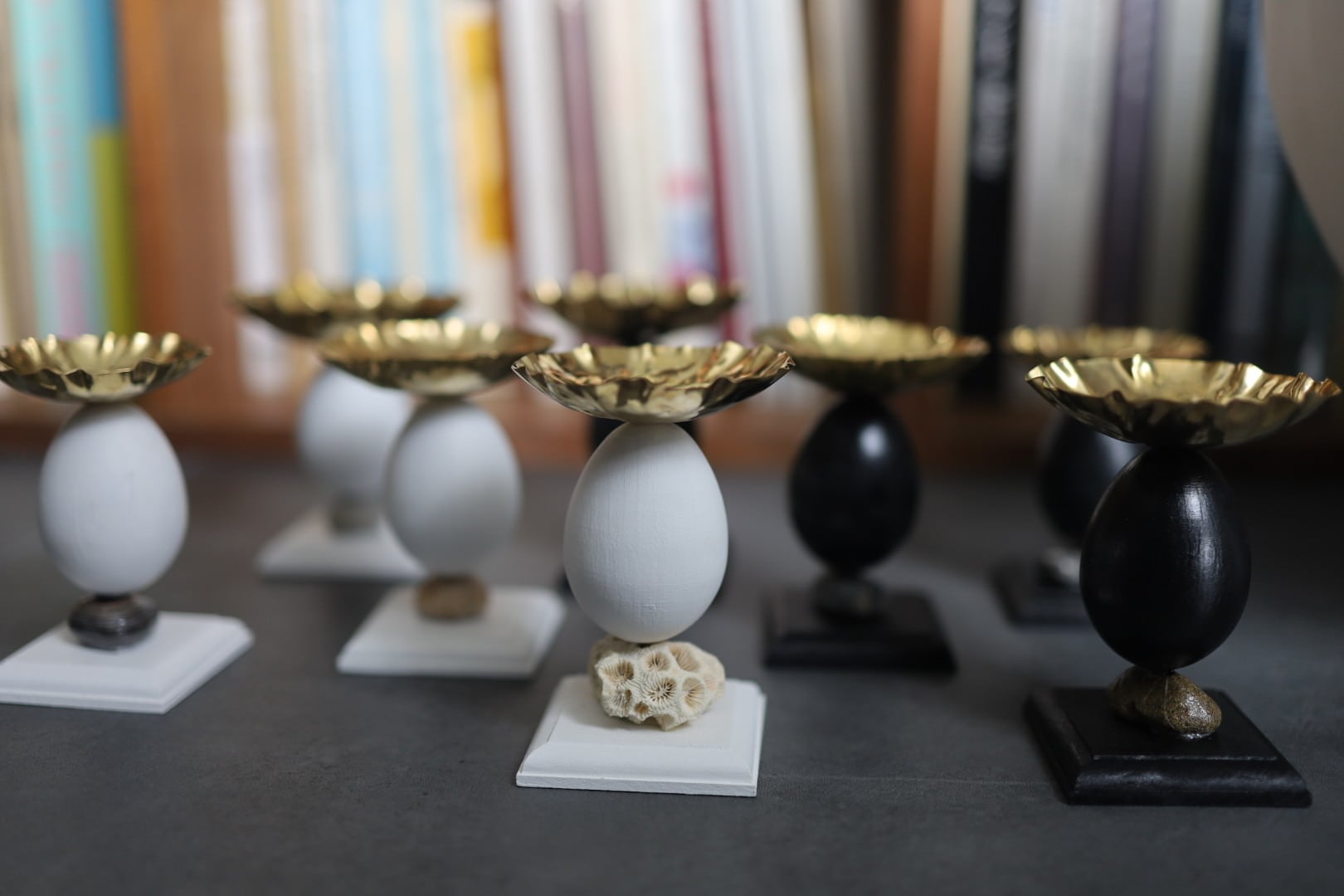 静かに佇む“石“と“卵“と“真鍮“のかたち。